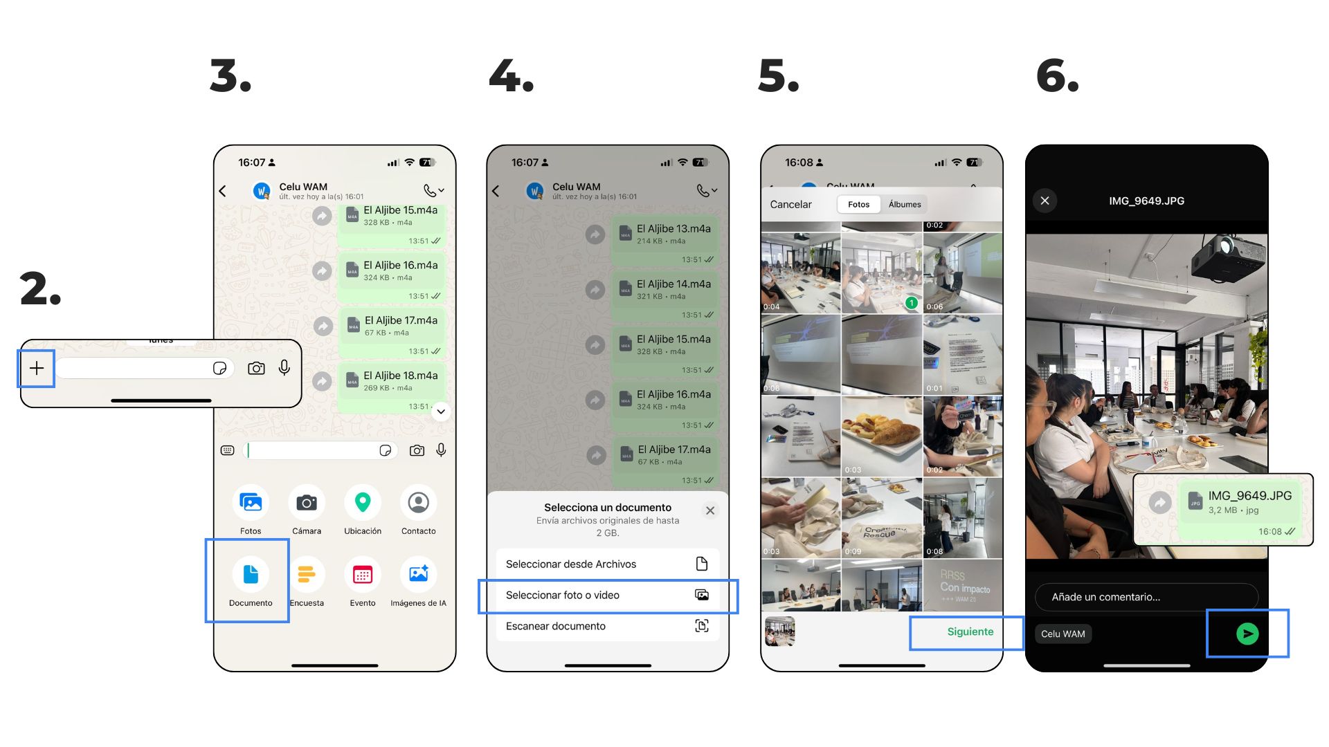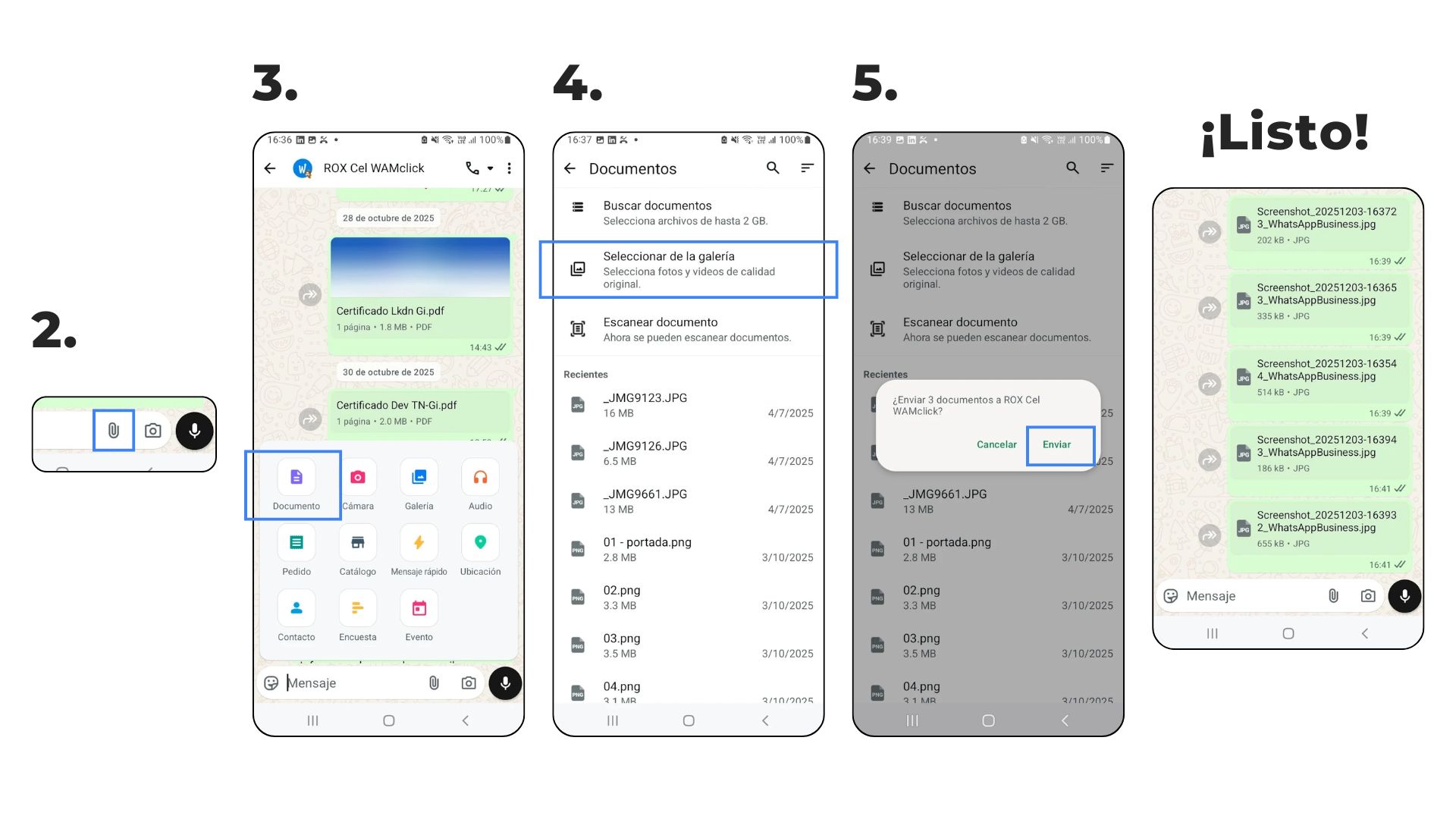 - Enviar los archivos y ¡listo! Se enviará como documento en su calidad original.